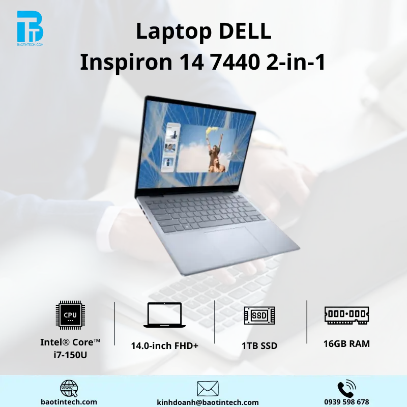 Laptop Dell Inspiron 14 7440 2-in-1N7440-C7U161W11IBUCORE 7 150U/16GB/1TB SSD/14.0 INCH FHD+/WIN11/OFFICE HS 21/BÚT CẢM ỨNG DELL-PN5122W/ICE BLUE/ P186G) (P186G001)