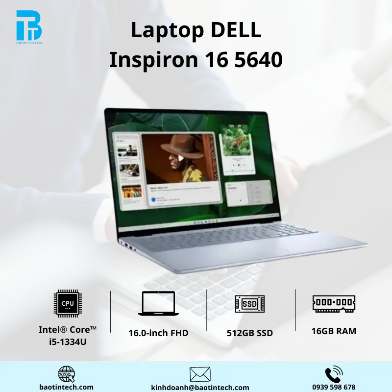 Laptop Dell Inspiron 16 5640 I5-1334U/ 16GB/ 512GB SSD/ 16.0 INCH FHD / WIN 11/ OFFICE HOME 2024/ ICE BLUE/ P131F/ N5640-I5U165W11IBU