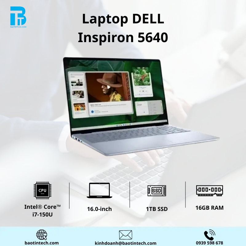 Laptop Dell Inspiron 5640 7-150U/ 16GB/ 1TB SSD/ 16.0 INCH/Win 11/Office HS21/ ICE BLUE/N5640-C7U161W11IBU