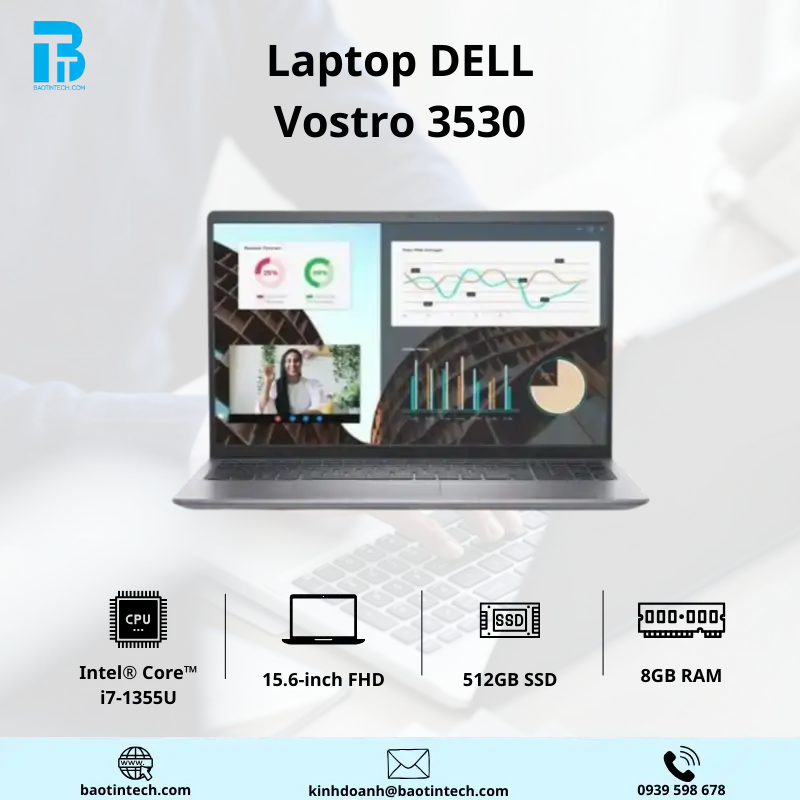 Laptop Dell Vostro 3530 V3530-i7U085W11GRD2 là một lựa chọn tuyệt vời cho những người đang tìm kiếm một máy tính với hiệu năng cao và tính di động. Với CPU mạnh mẽ, màn hình sắc nét, và các tính năng tiện ích, nó đáp ứng mọi nhu cầu của bạn.