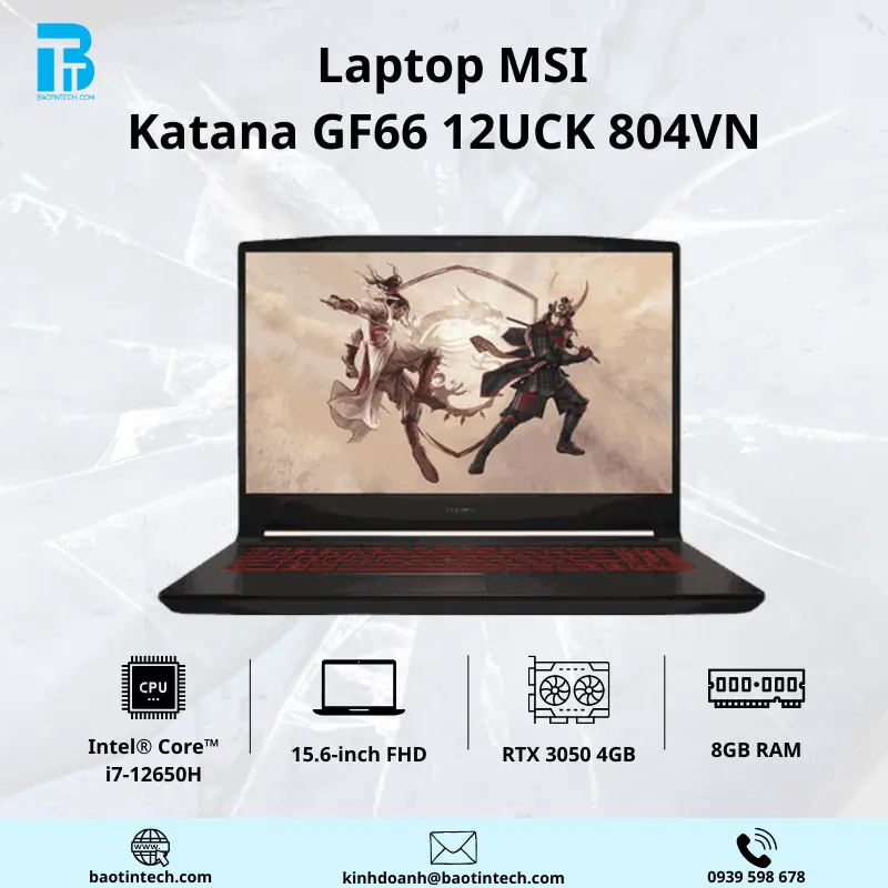 MÁY TÍNH XÁCH TAY MSI GF66 12UCK-804VN (I7-12650H/ 8GB/ 512GB SSD/ RTX 3050/4GB/ 15.6INCH FHD/ WIN11/ BALÔ/ BLACK) – 01Y