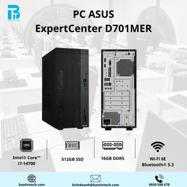 [PC] ASUS ExpertCenter D701MER i7-14700/16GD5/512G-SSD/TPM/B760/WF6E/BT5/KB/M/500W/NOS/3Y-OSS/ĐEN