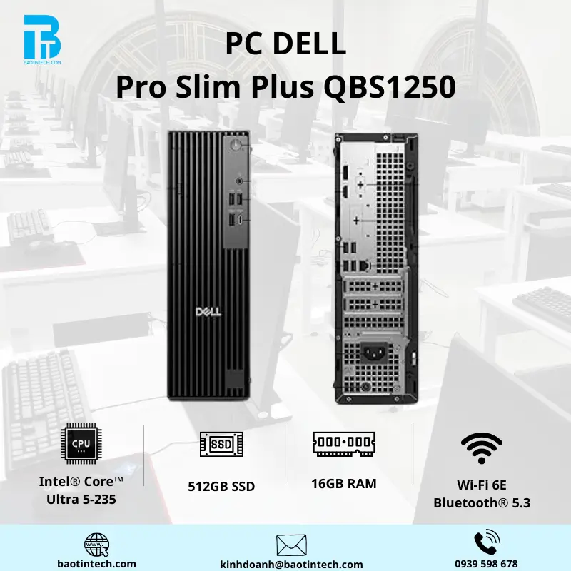 PC DELL PRO SLIM PLUS QBS1250/ ULTRA 5-235/ 16GB/ 512GB SSD/ INTEL GRAPHICS/ AX+BT/ KB/ M/ KYHD/ WIN 11 HOME – WARRANTY 03 YEAR