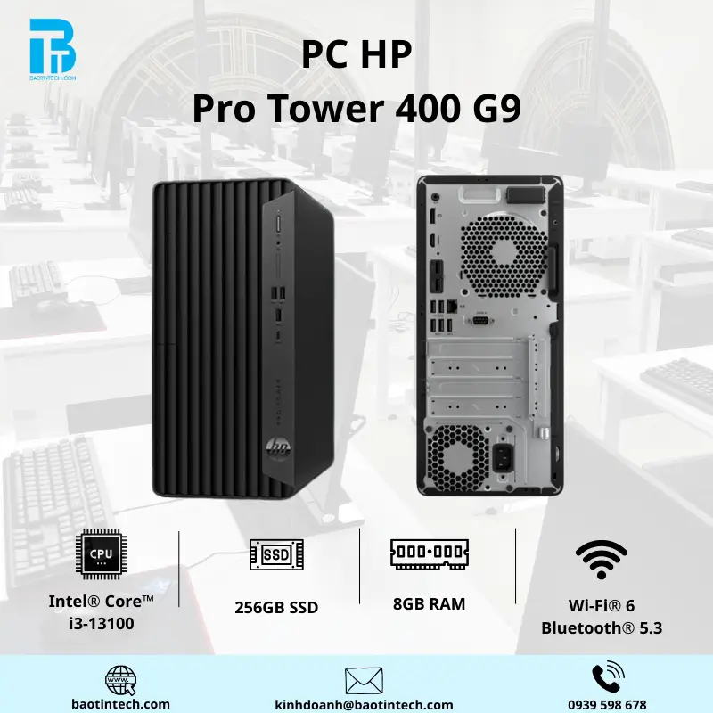 [BG8P9AT] PC HP PRO TOWER 400 G9 I3-13100(4*3.4)/8G/256GSSD/WL/BT/KB/M/W11SL/ĐEN – 01Y